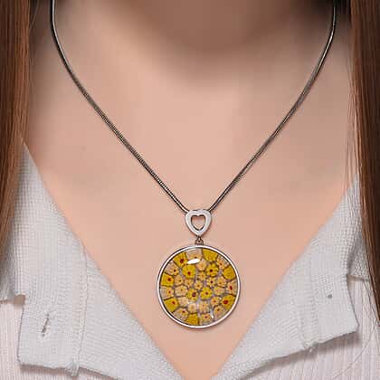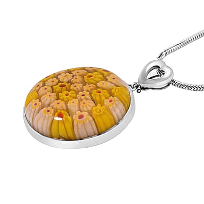 Yellow Colour Murano Style Glass Pendant with Snake Chain (Size 24) 25.00 Ct.