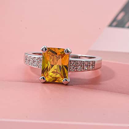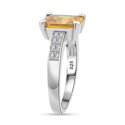 Yellow Cubic Zirconia & White Cubic Zirconia Ring in Rhodium Overlay Sterling Silver 2.13 Ct.