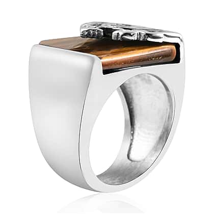 Yellow Tigers Eye Lion Band Ring With Oxidised in Stainless Steel