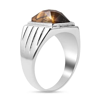 Yellow Tigers Eye Ring in Stainless Steel 13.00 Ct.