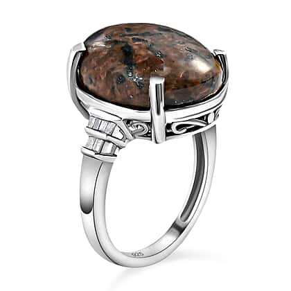 Yooperlite & Diamond Ring in Platinum Overlay Sterling Silver 12.25 Ct