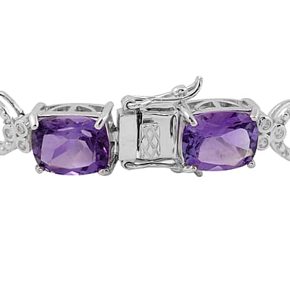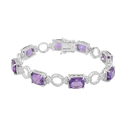Zambian Amethyst (Cush), Natural White Cambodian Zircon Bracelet (Size 8) in Rhodium Overlay Sterling Silver 23.66 Ct, Silver wt 13.60 Gms