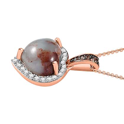 Zimbaprase, Natural White Zircon and Brown Zircon Heart Pendant with Chain (Size 20) in 18K Vermeil Rose Gold Plated Sterling Silver 4.74 Ct
